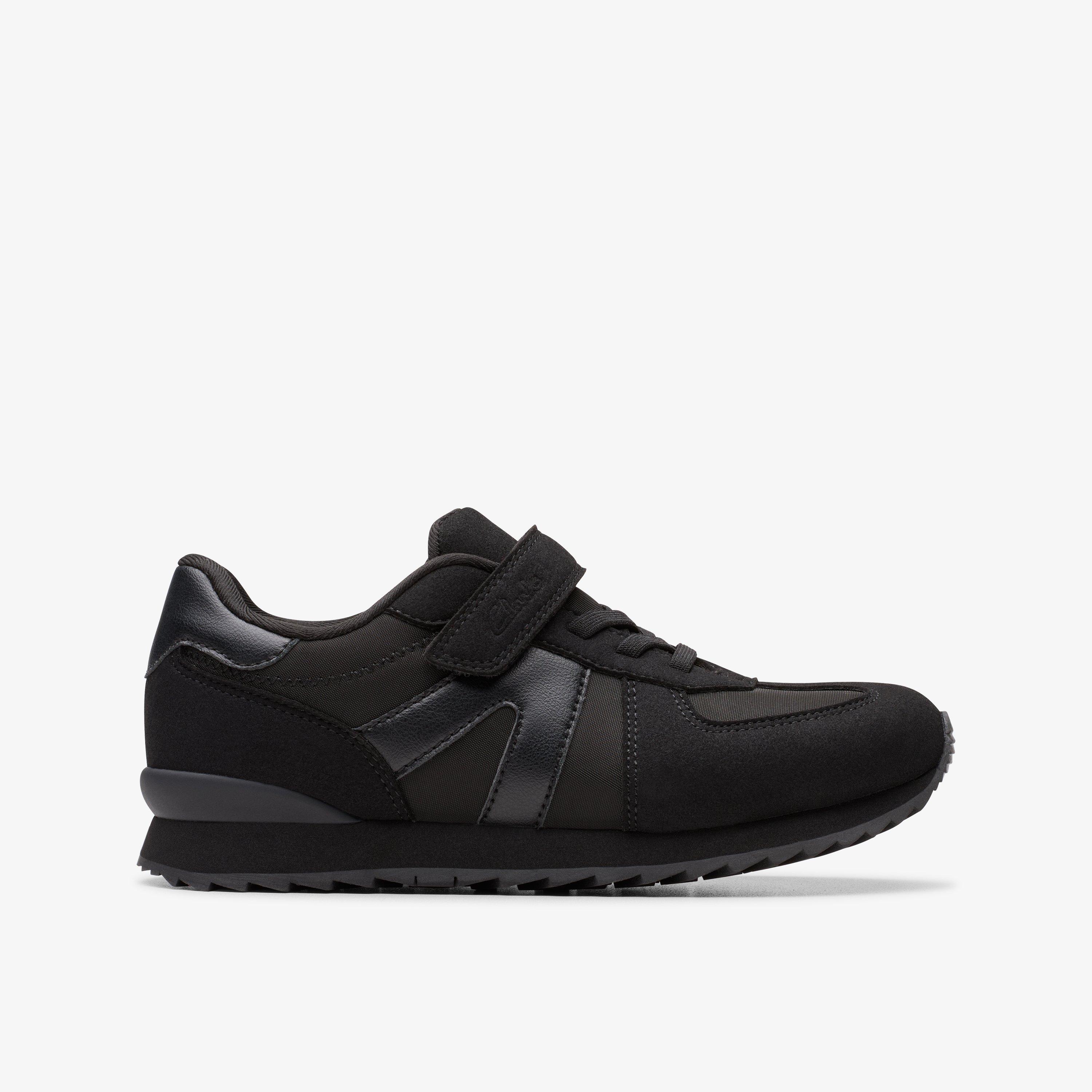 Our school trainers are designed to keep up with active children from morning registration through to the last lesson. Whether they are playing outside, moving through corridors or focusing in class, each pair offers the comfort, support and durability needed for a full day at school. Featuring flexible soles, breathable linings, and soft cushioning, these trainers provide everyday comfort that supports natural movement. Our black school trainers meet uniform requirements and are designed for physical education. The collection includes finishes like leather, mesh, and canvas. Available in a variety of fits and sizes, including wide fit and easy fastenings, our trainers are built to last the school term and beyond. For a more structured feel with the flexibility of a trainer, explore our trainer style school shoes. They offer a smart finish suitable for more formal settings without compromising on comfort or ease of movement. Many parents also choose to complement our trainers with kids' school shoes for more formal days or pick black school plimsolls as a comfortable option for indoor lessons and sports. Whatever the schedule holds, Clarks provides the fit, quality and support to help children move with confidence throughout their day. To complete their school wardrobe, explore our full selection of school shoes and find trusted styles for the new term.